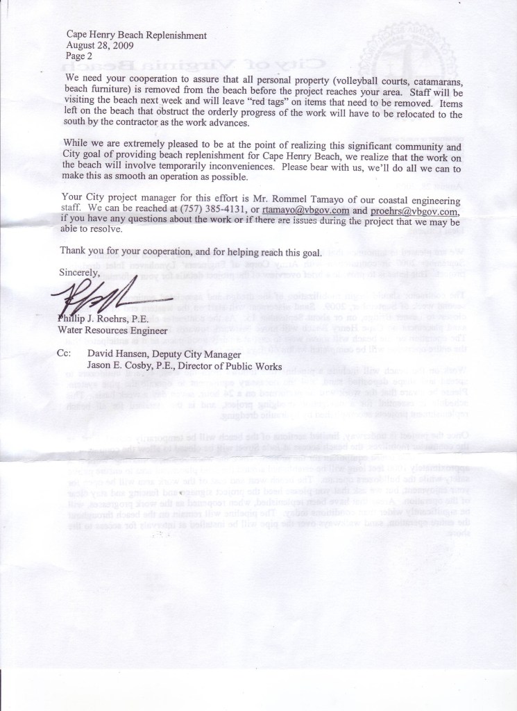 Sand Replacement Letter Pg 2 Published September 3, 2009 at 2549 × 3505 in Sand Replacement begins 2nd week of September