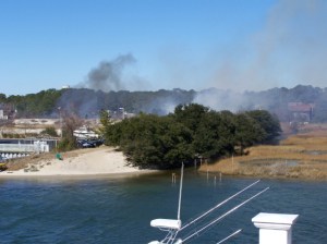 Strong winds, dry conditions and fire resulted in a scary situation for Cape Story and Long Creek Cove residents on Saturday. Luckily, the wind was blowing in a favorable direction to keep the fire from spreading to Cape Story and Long Creek Cove homes as well as the boats at Marina Shores. The residents are also thankful that Virginia Beach’s finest firefighters were able to put the fire out in a short period of time without incident.