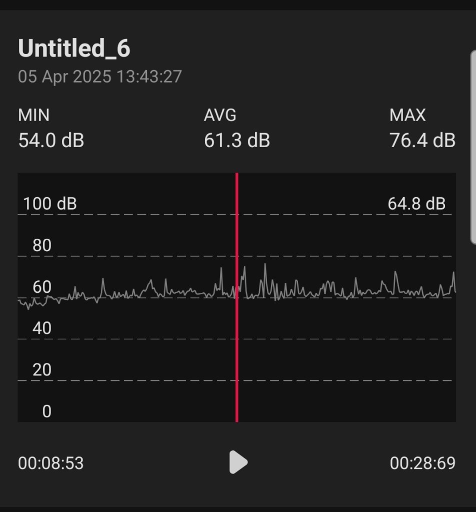 A video of the Raised Crosswalk on Laskin can be found below, click on the image to watch the video. A sound meter app was also used to record cars traversing this Raised Crosswalk. The video and sound analysis were recorded roughly 60 feet from the Crosswalk. The resultant sound from vehicles traversing the bumps, even the one filmed that was traveling roughly 35 MPH (25 MPH is the neighborhood speed limit), was approximately 75dB.